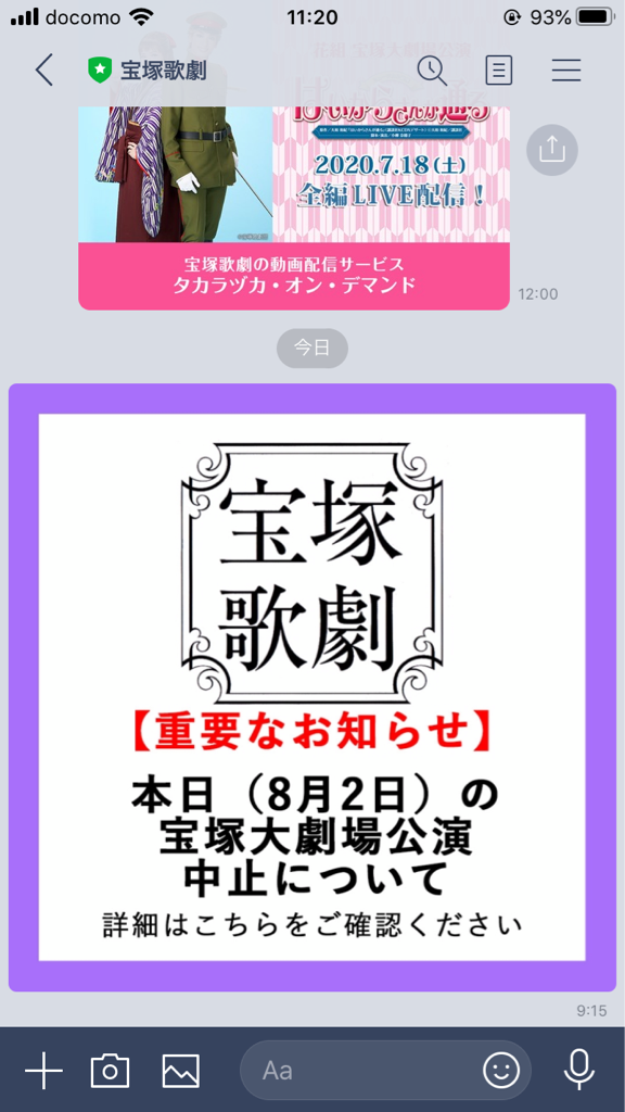 公演中止のお知らせはLINEで届きました。
