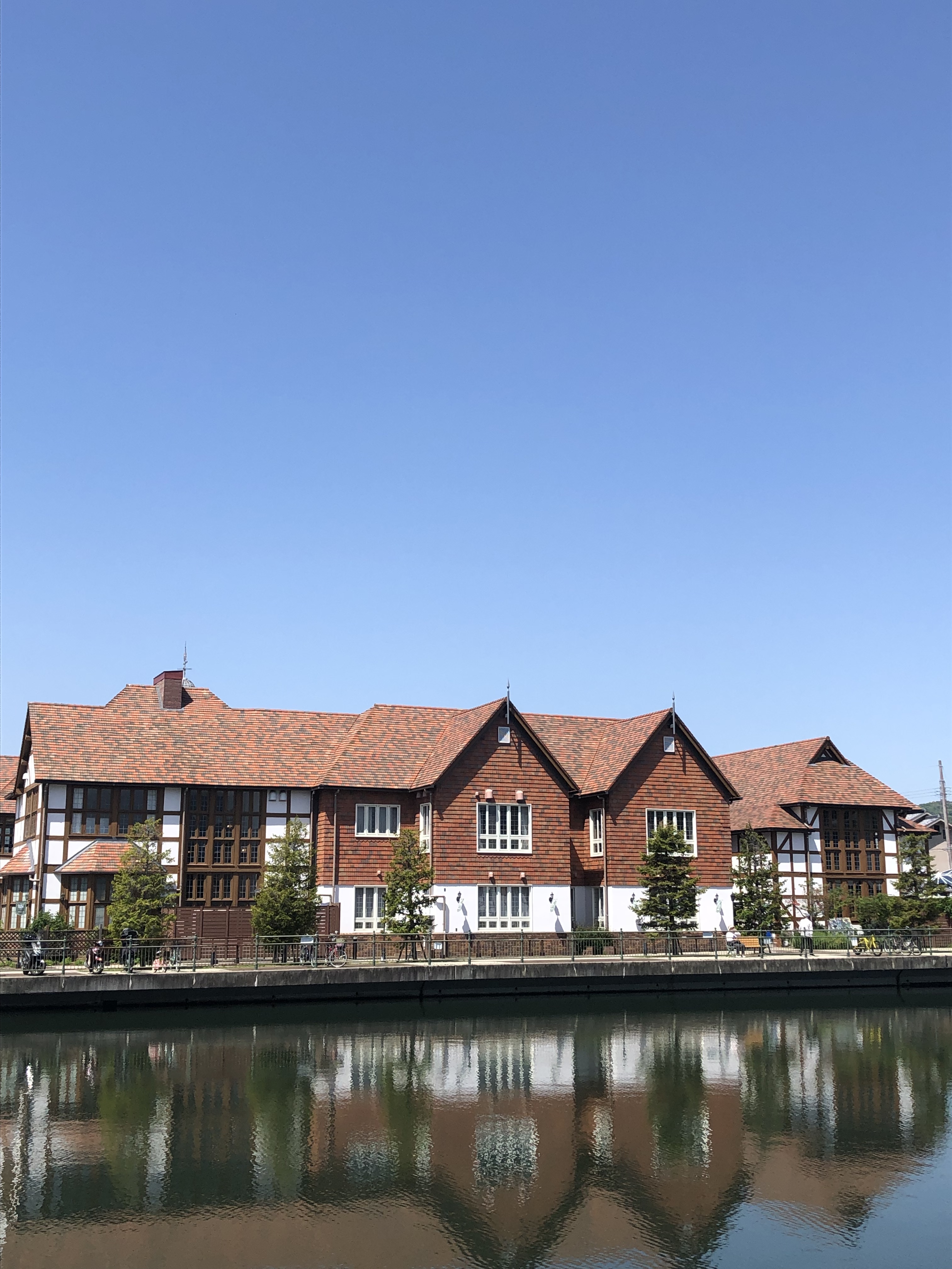池に映えるイギリス風の建物が素敵。