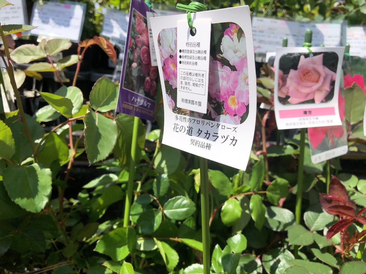 「花の道 タカラヅカ」というベタな名前のバラもありましたよ。1540円だったかな。