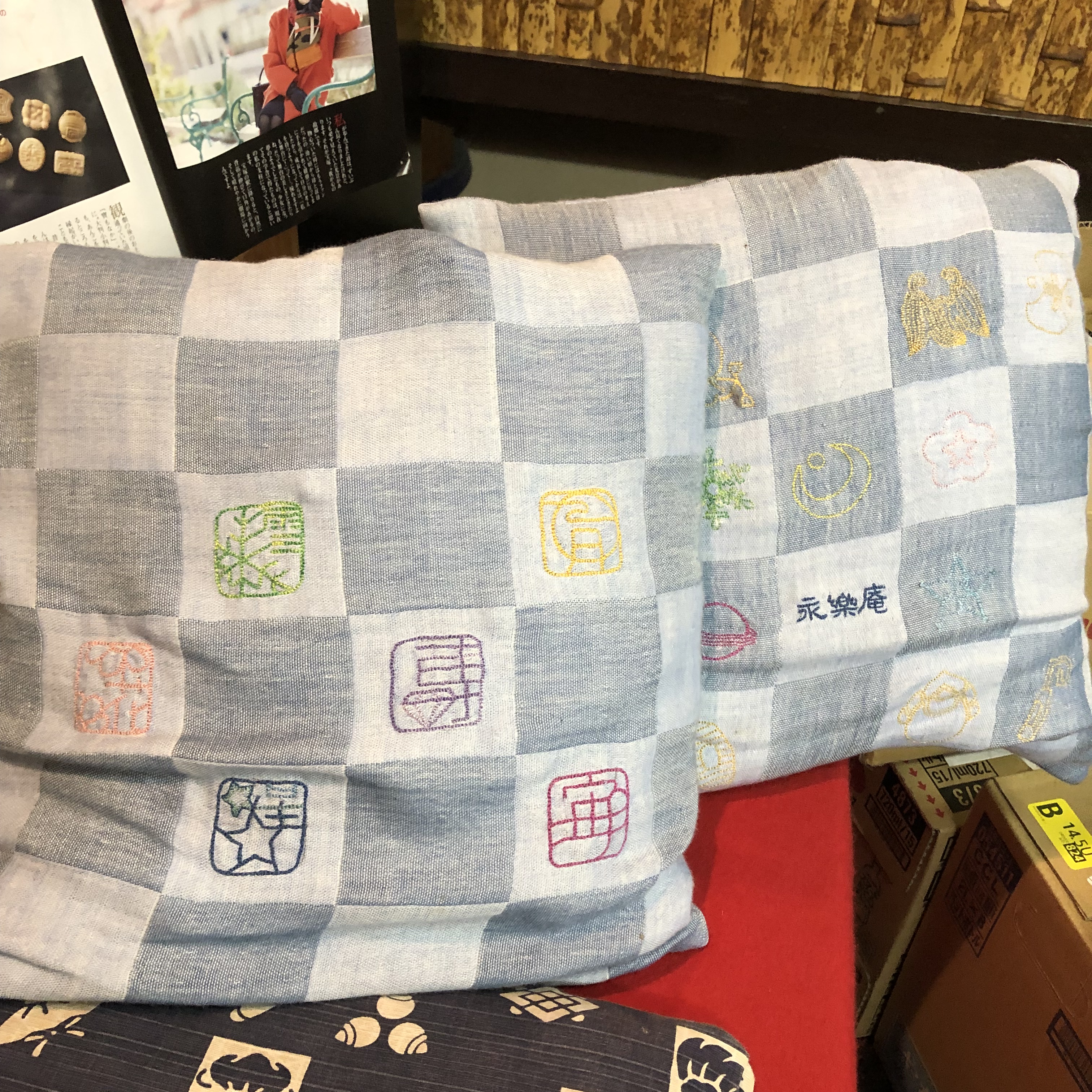 椅子には組モチーフのクッションが。宝塚ファンのお客さんが作って下さったらしい。