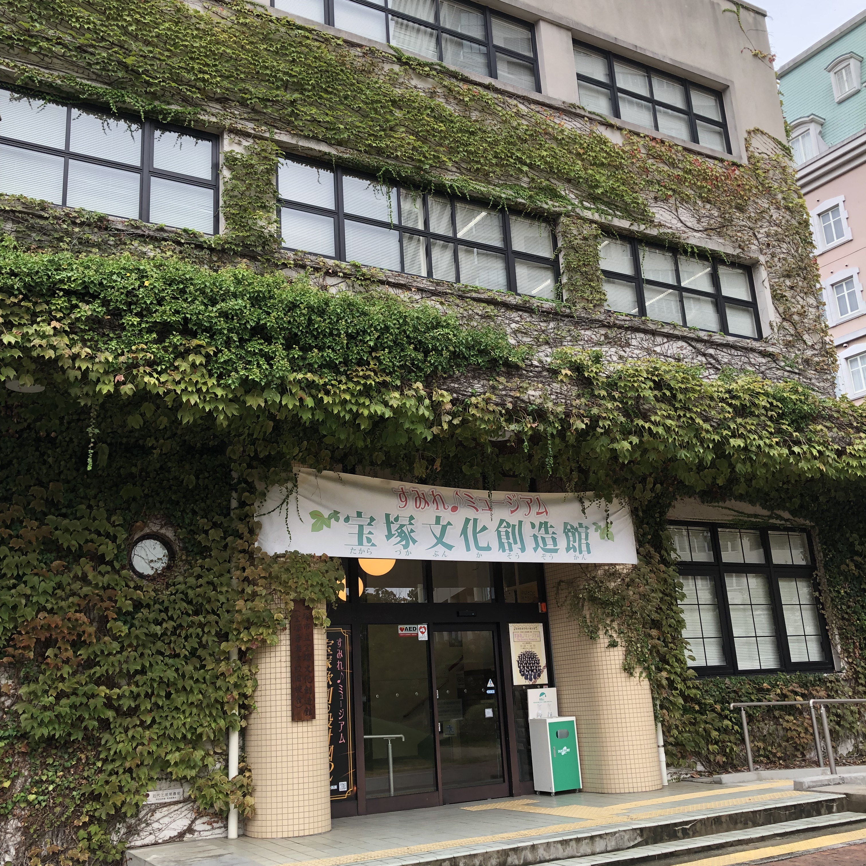 大劇場から徒歩5分、蔦が絡まる3階建ての小ぢんまりした建物は、旧宝塚音楽学校です。