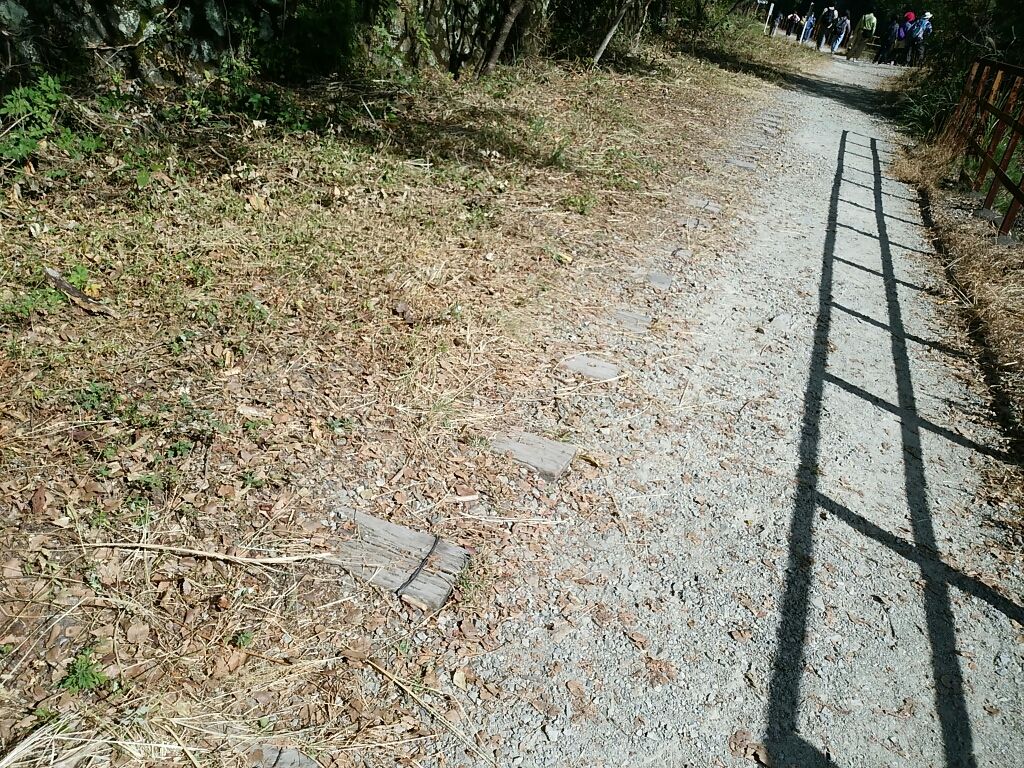 元は線路だったところを歩くので、枕木があります。