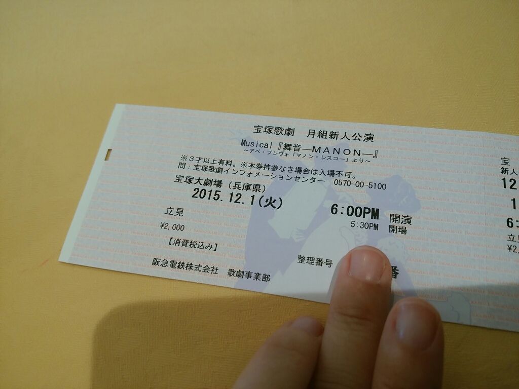 月組新人公演のチケット、立見ですが買えました。