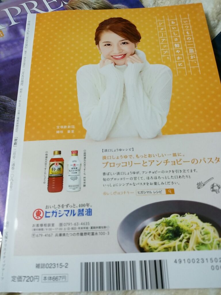 昨日届いた新しい『宝塚GRAPH』にもあーちゃんのヒガシマル広告(別バージョン)が出てました。