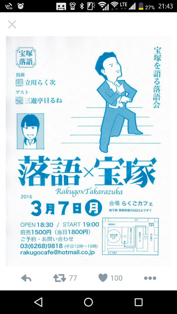 宝塚一般来月7日、らくごカフェにて落語×宝塚なるイベントがおこなわれるようです。