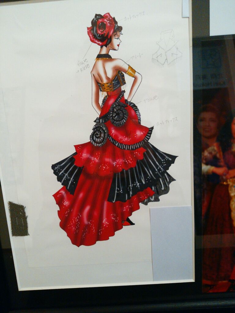 デザイン画が後ろ向きで「背中!」なのが色っぽい。