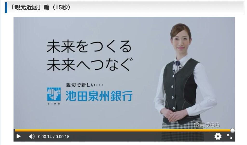 うらら様ご出演の池田泉州銀行の新しいCMが池銀HPにUPされてます。