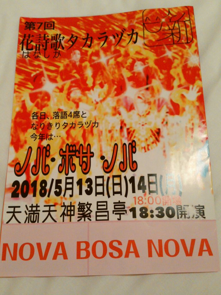 昨日は天満天神繁昌亭噺家さんによるなりきりタカラヅカ公演、「第7回花詩歌タカラヅカ ノバ・ボサ・ノバ」を観てきました。