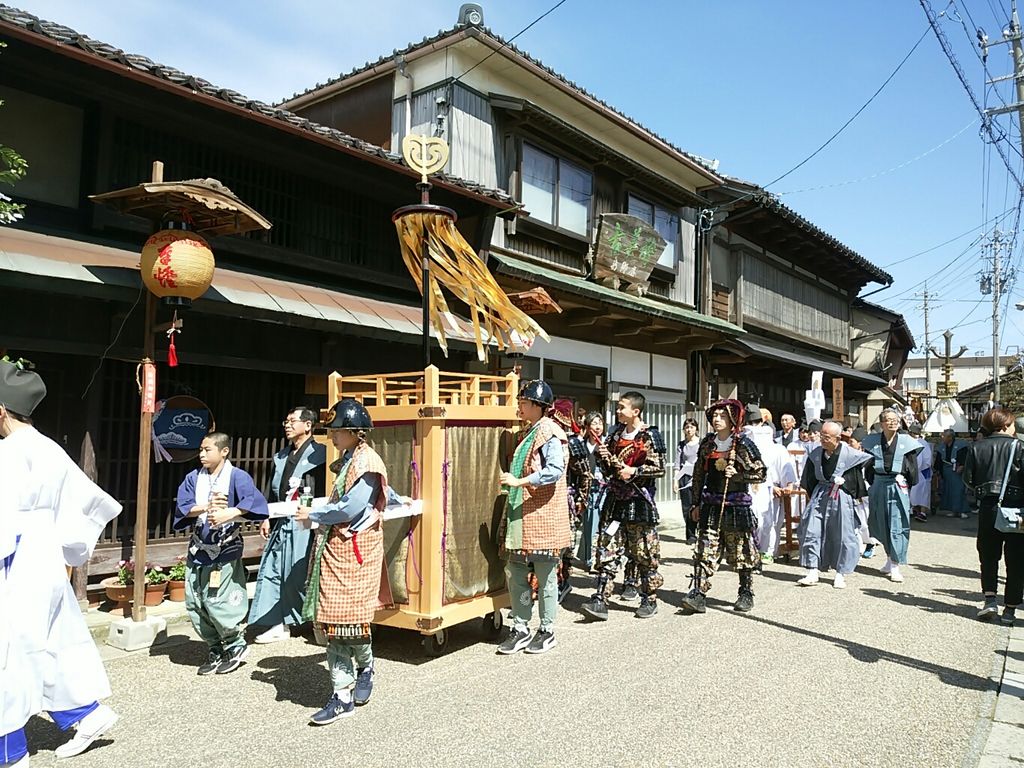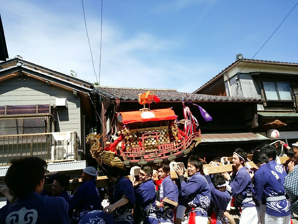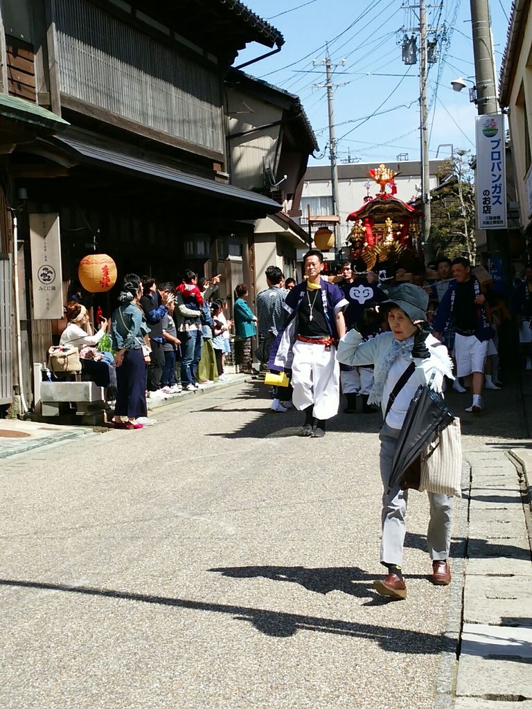 次々山車やお御輿が通っていきます。