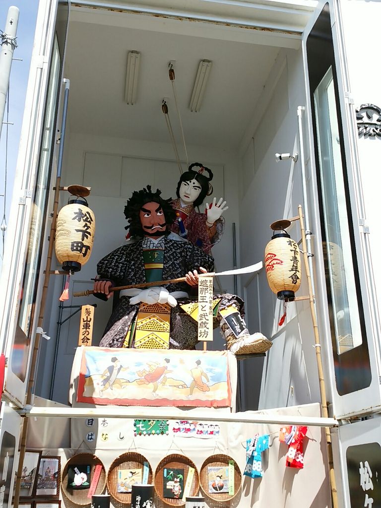 これも過去の山車。平成28年の、遮那王と武蔵坊だとのこと。(遮那王って義経のことね、念のため)