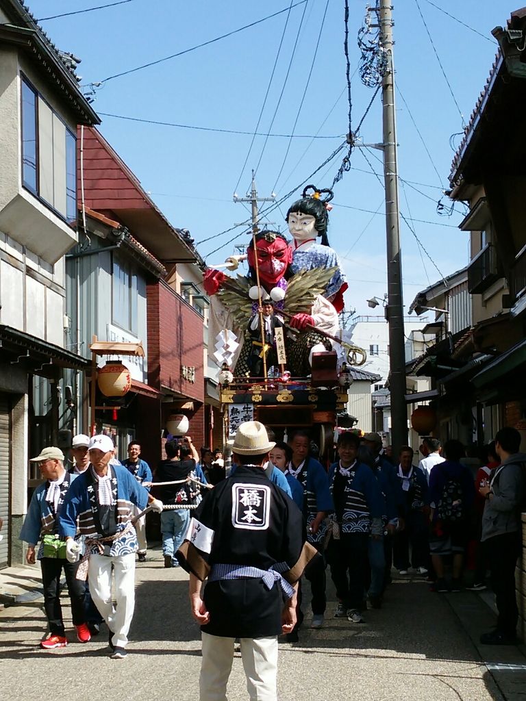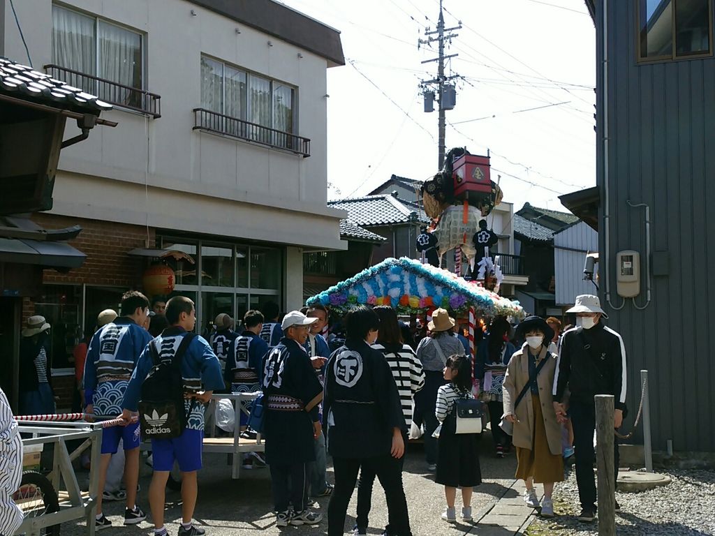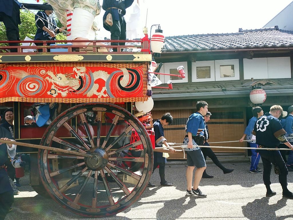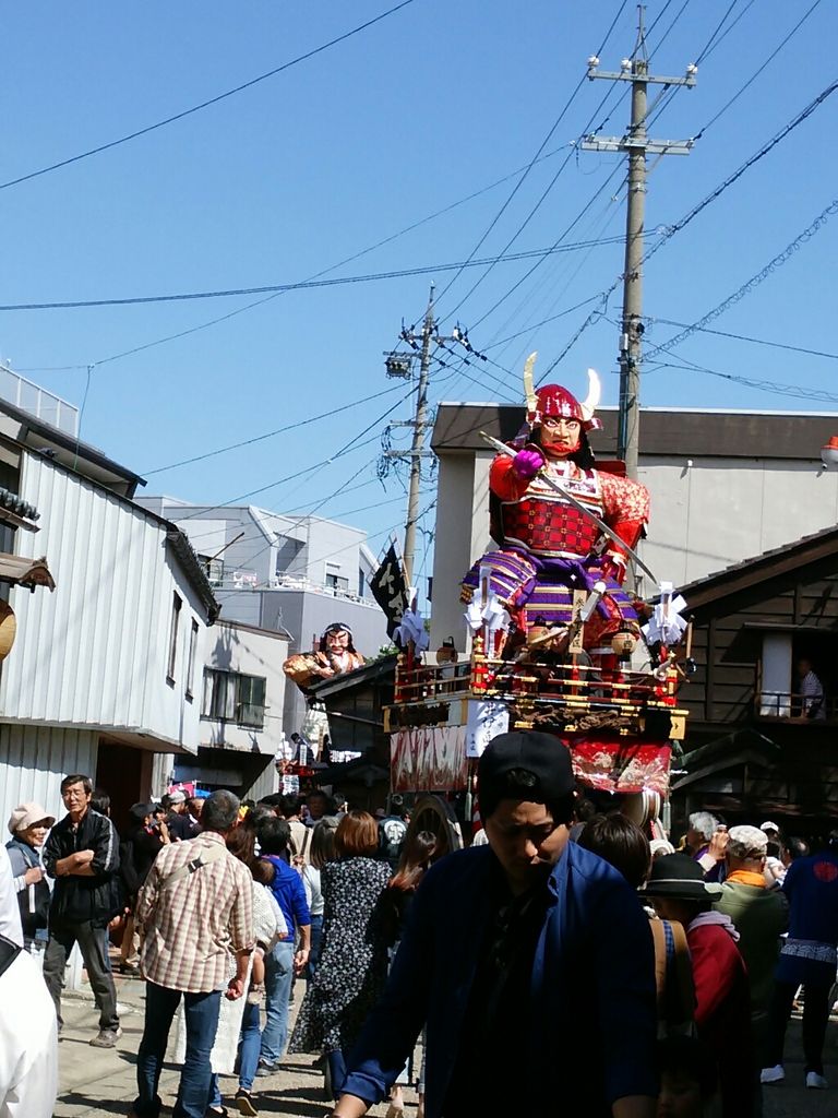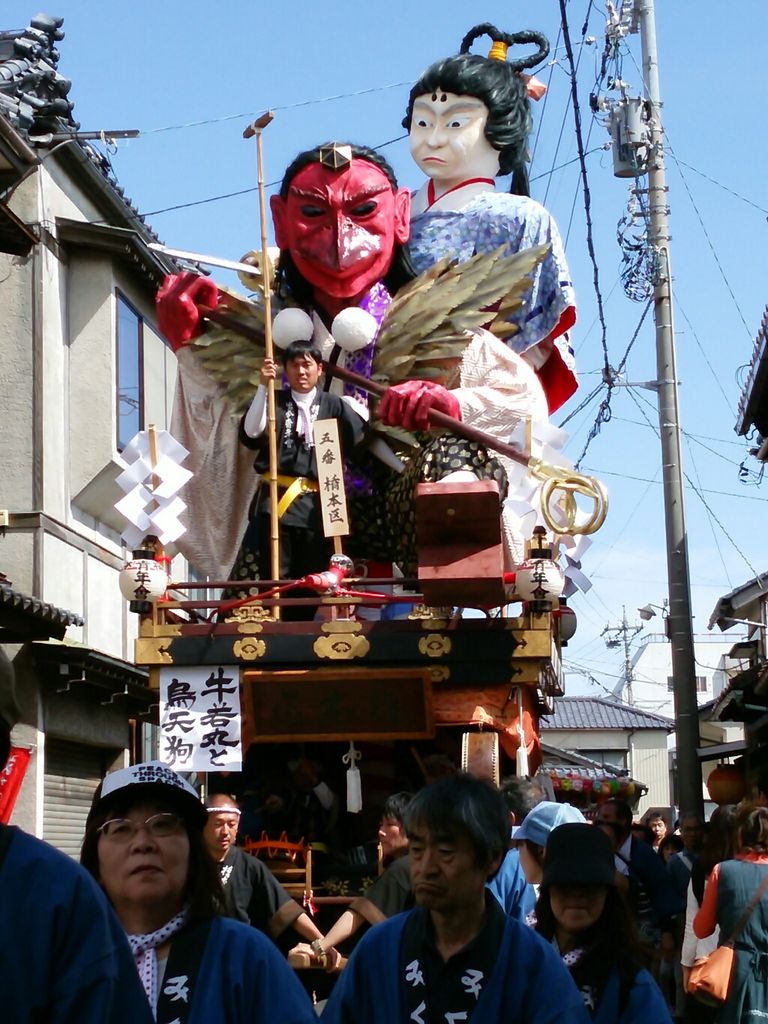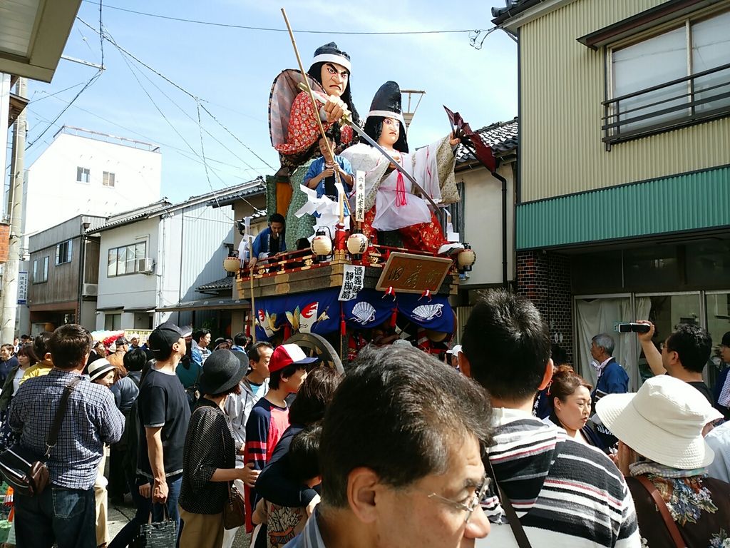 わかりにくいですが、いずれの山車でも人形の下などで子供たちがお化粧をして演奏してます。