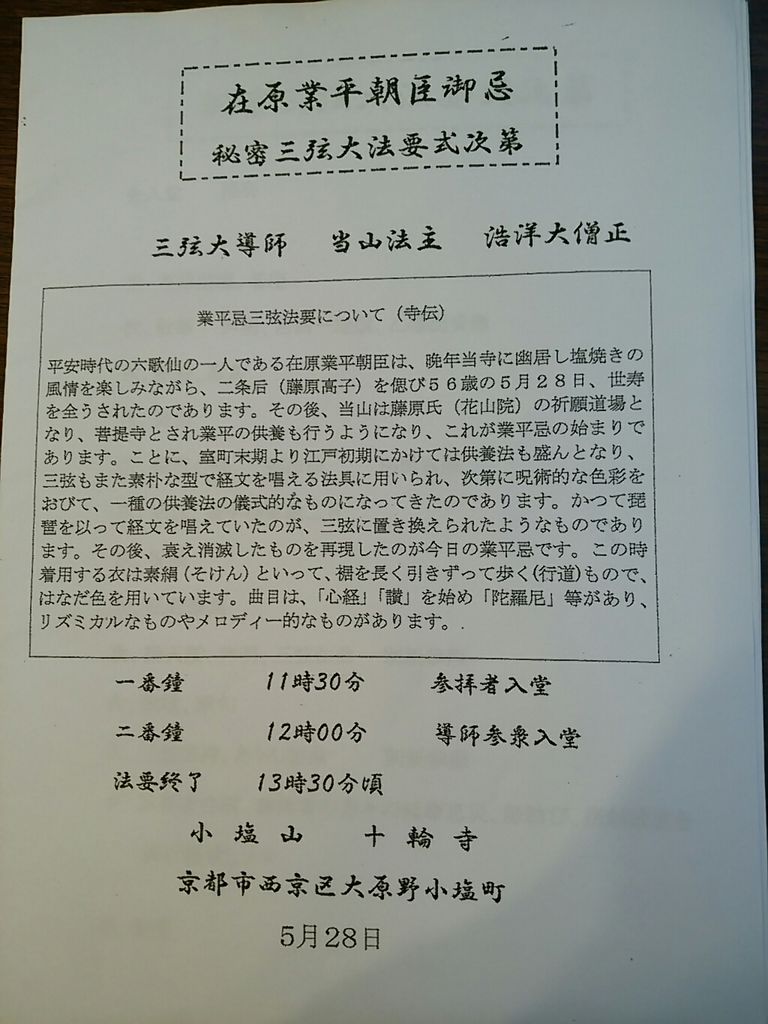 在原業平ゆかりのお寺で、私たちが行った日は業平の命日。毎年「業平忌」という法要が行われます。