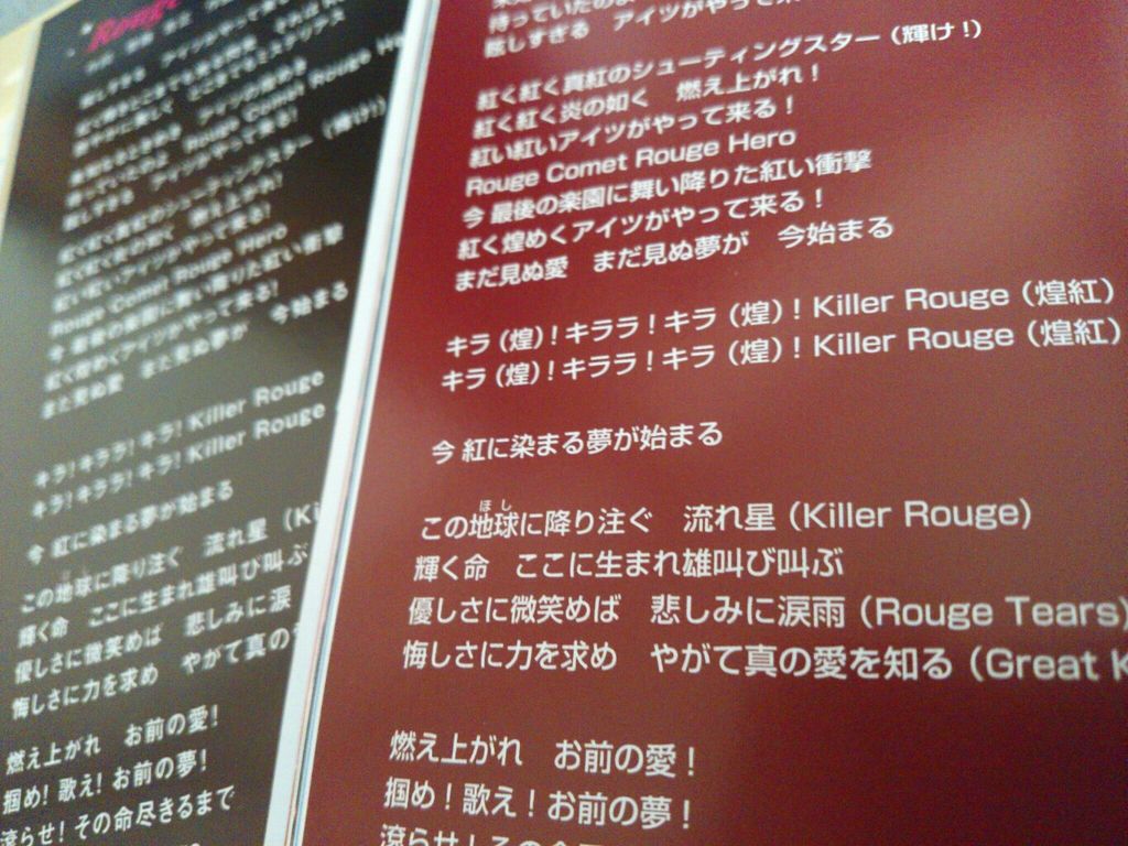 「キラ(煌)!キララ!キラ(煌)!KillerRouge(煌紅)」これが梅芸版(というか台湾公演版?)。