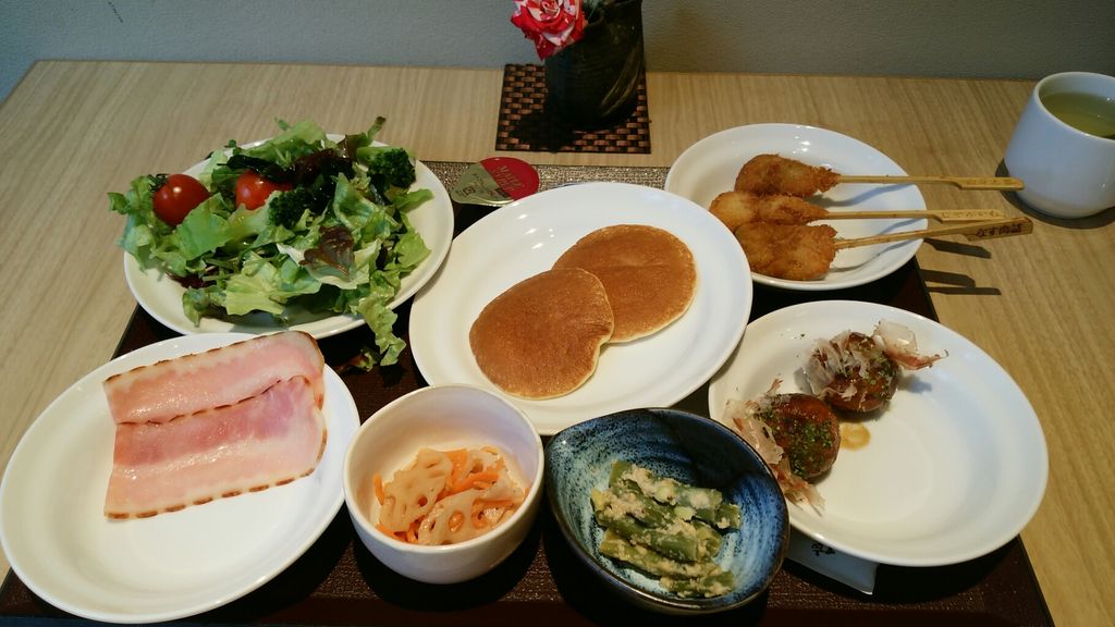 たこ焼きと串カツが朝っぱらからあるというのは親切。