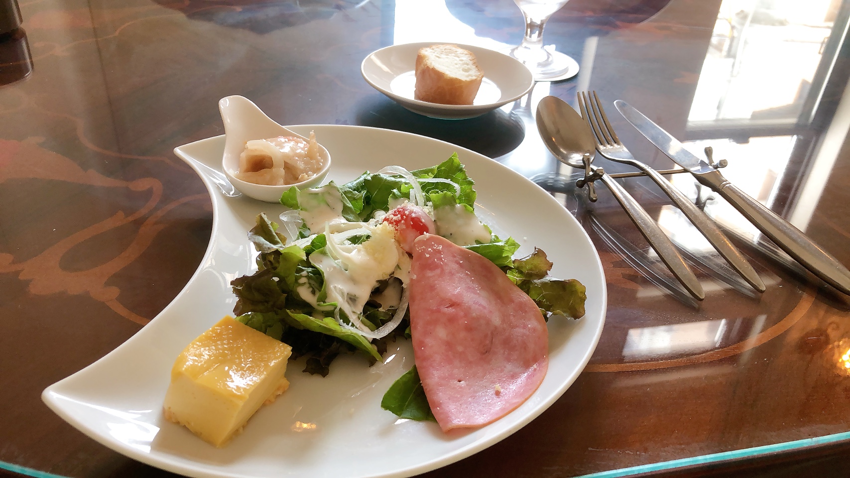 前菜。「月地亭」の名にふさわしく月のお皿でサーブされました。