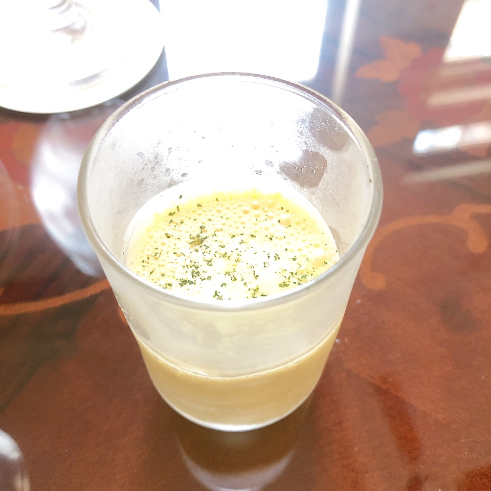 スープ。かぼちゃのポタージュだったっけ。