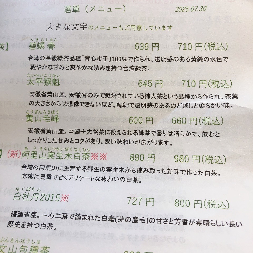 この日オーダーしたのは黄山毛峰。