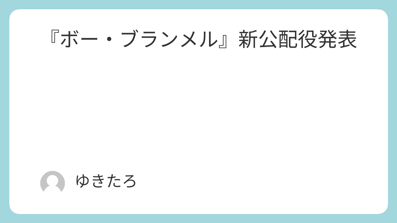 『ボー・ブランメル~美しすぎた男~』新人公演の配役が出ました。