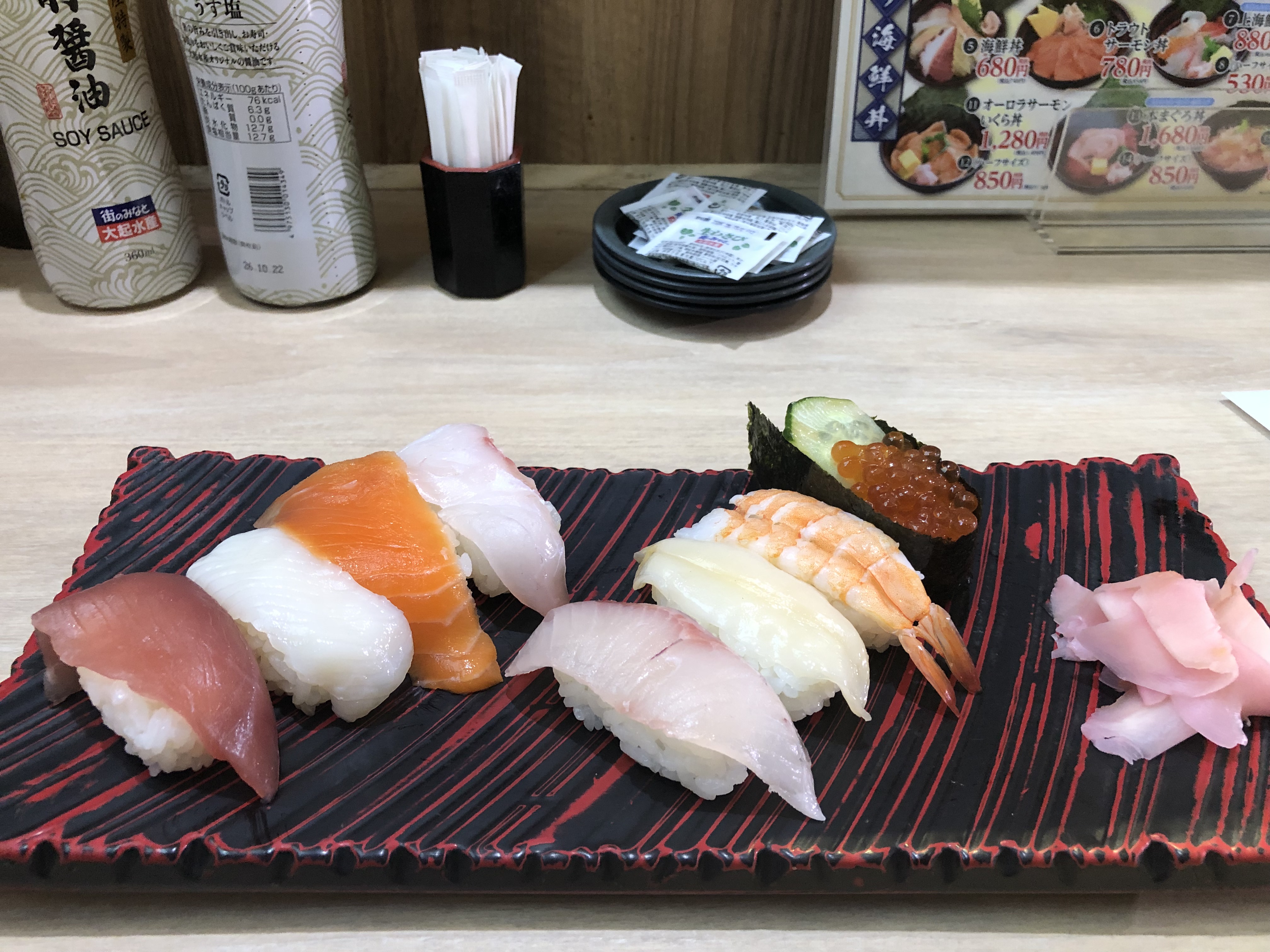 奥のほうにあるお寿司やさんで少しだけ食べました。