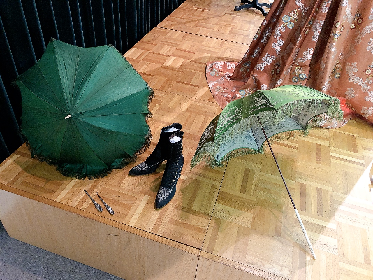 当時の衣装の実物を解体して作りを見せてくれたり、衣装の生地に触れたりするのも面白いところ。