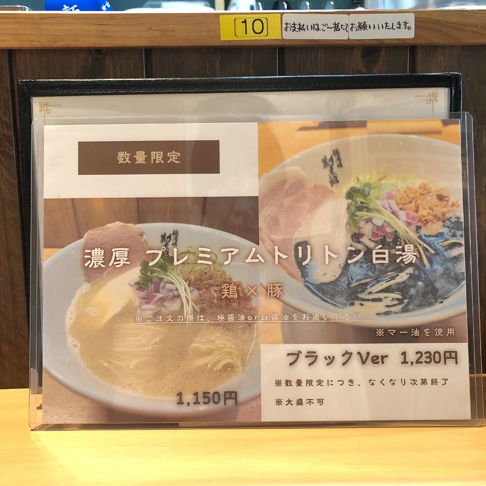 というわけで数量限定の「濃厚プレミアムトリトン白湯」をオーダー。