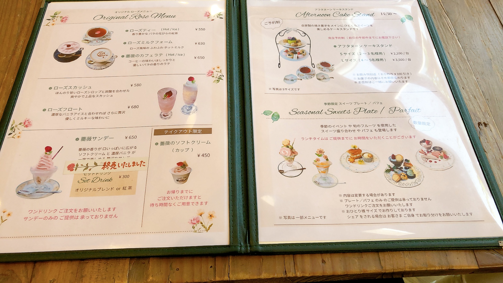 バラ系のドリンクやデザートが充実してます。