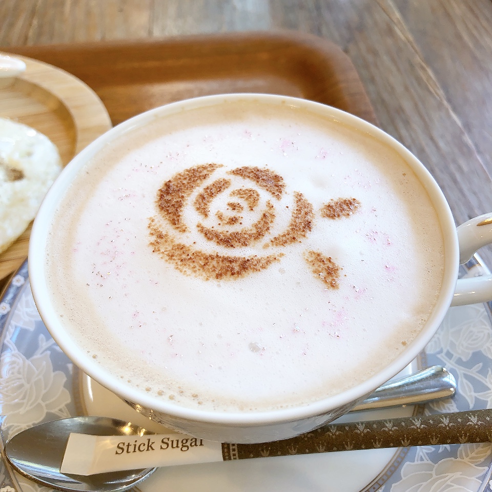 薔薇のカフェラテも美味しい。