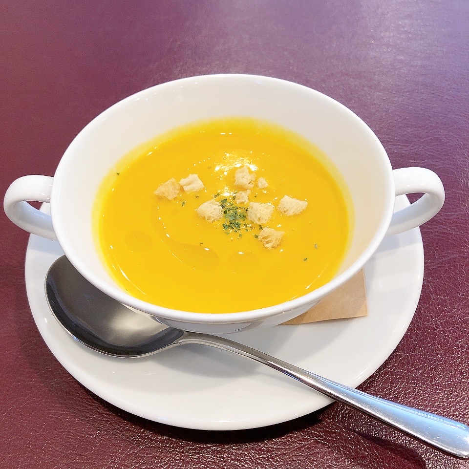 かぼちゃのスープとパン。