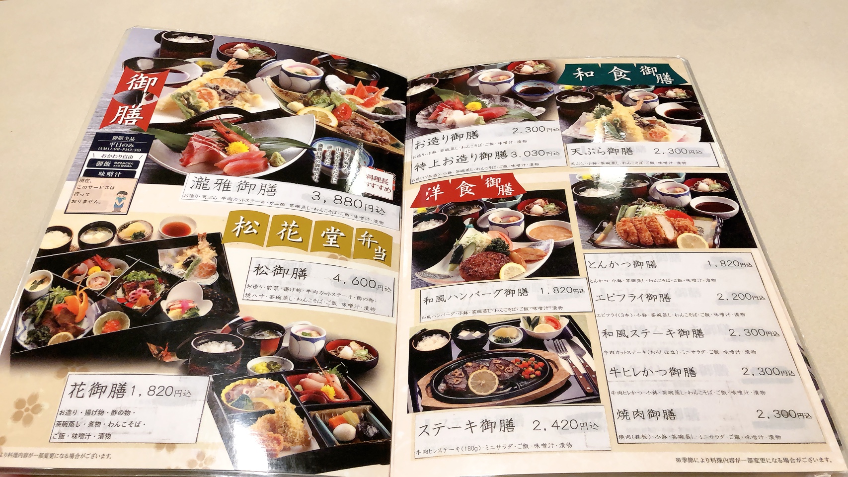 さて、晩ごはんは松花堂弁当の「花御膳」にしました。