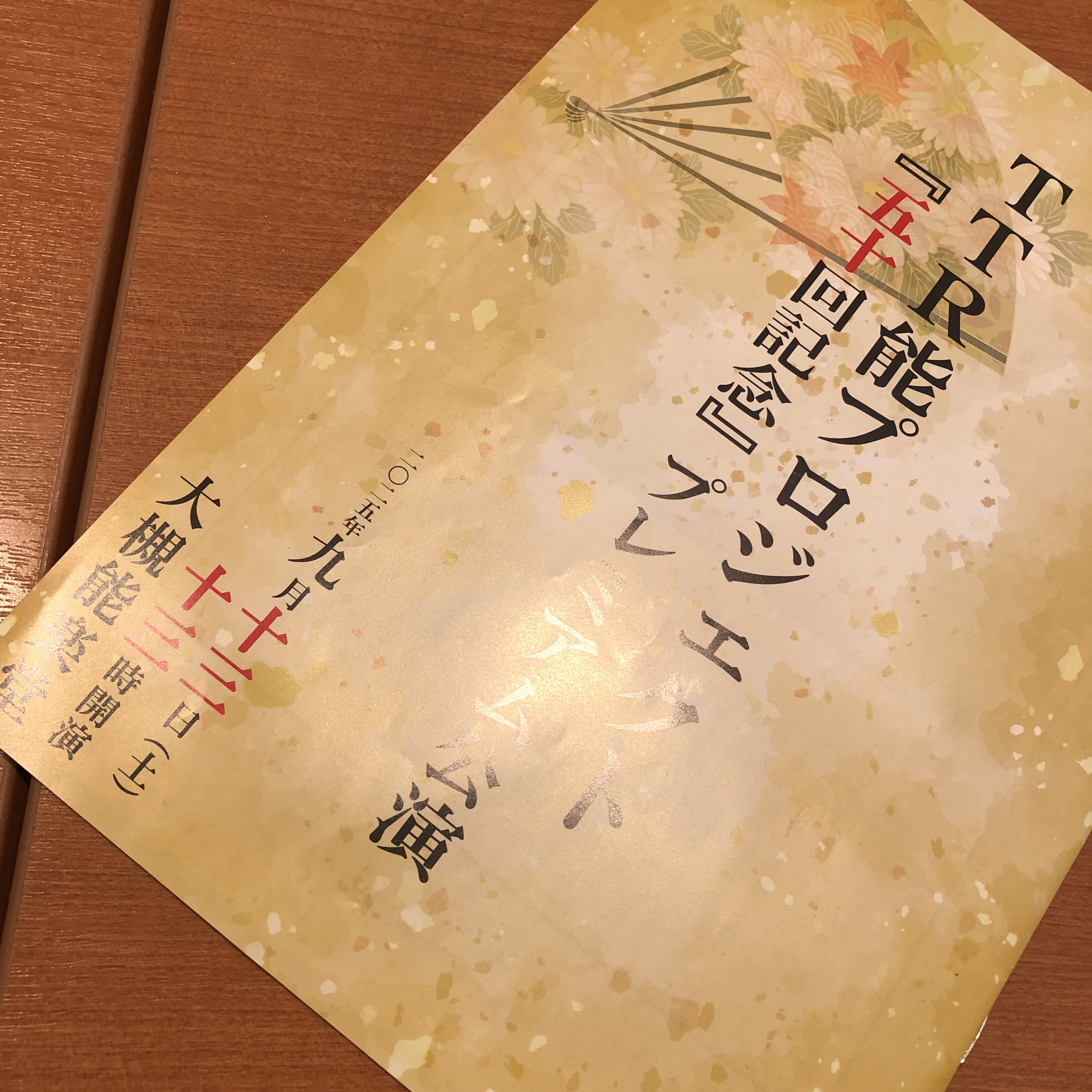 9月13日(土)13時から行われた「TTR能プロジェクト『五十回記念』プレミアム公演」です。